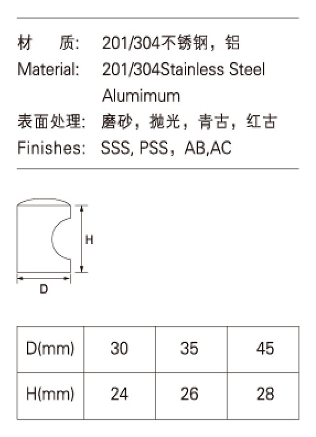 Đồ nội thất Tay nắm bằng thép không gỉ, Cửa kéo bằng thép không gỉ Đường kính 30 35 45mm